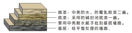 采用核殼型丙烯酸樹脂和高效廣譜的殺菌防霉劑配制面的高效防水防霉乳膠漆,它與一般的防霉涂料相比有著無可比擬的殺菌防霉效果,能長期保持潮濕度高的墻面不霉變。 主要適用: